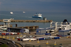 The views from the castle grounds across the Channel from the look-out posts were spectacular. You could see France in the horizon, though, as the day progressed, dark clouds over the Continent blurred the vista. Aerial views of Dover Castle and the White Cliffs were inaccessible to us, however, so we had to content ourselves with a small side view of the cliffs. There were numerous ferries coming and going to the Continent.